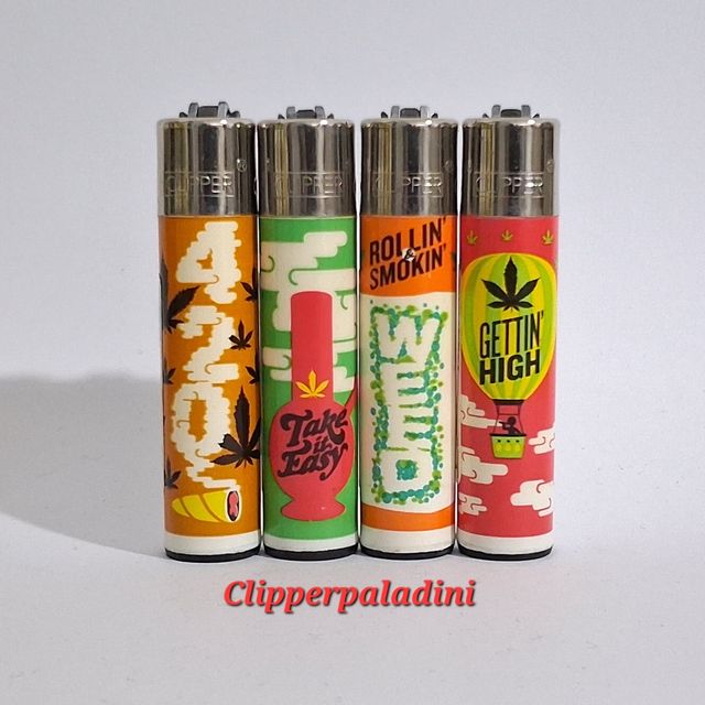 Dettagli del prodottoSet di quattro accendini Clipper con design a tema.