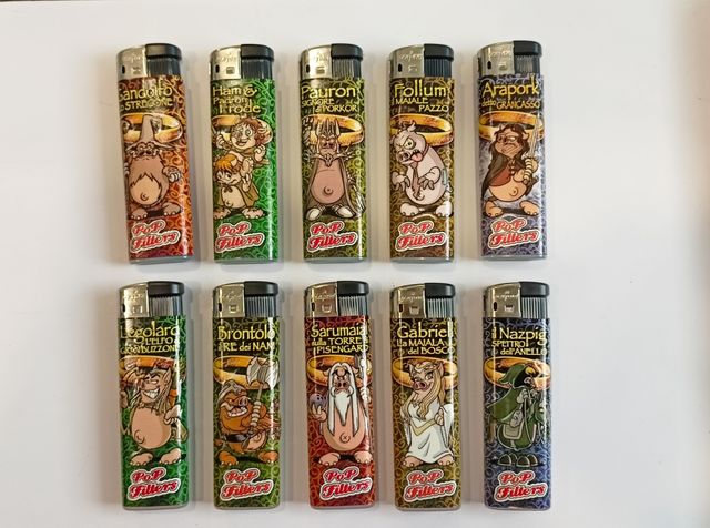 Seconda serie, anno 2011. 10 accendini Funzionanti. Completi di espositore girevole e con luci.