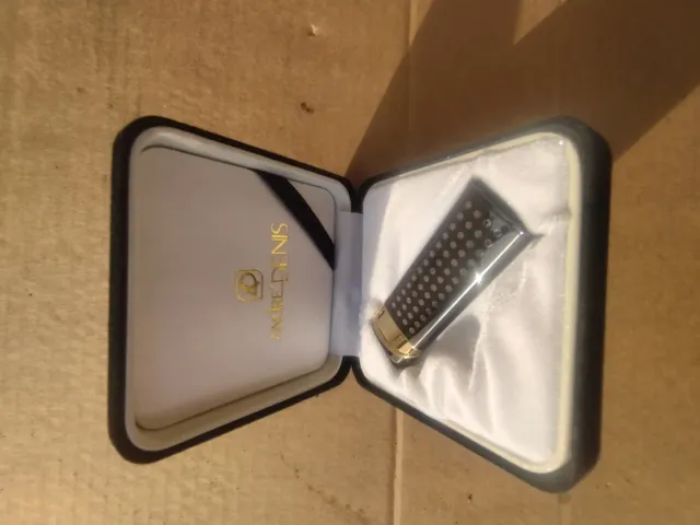 Elegante accendino della marca André Denis, presentato nella sua scatola originale. - Design con puntini. - Dettagli dorati.