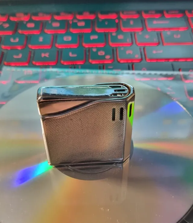 Accendino dal design moderno e accattivante, con finitura in metallo. - Corpo in metallo con texture. - Mancante di gas. (caricabile)