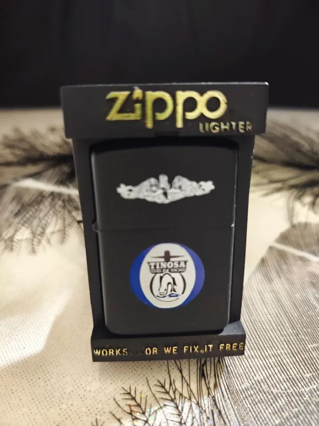 Dettagli del prodottoAccendino Zippo nero con logo.