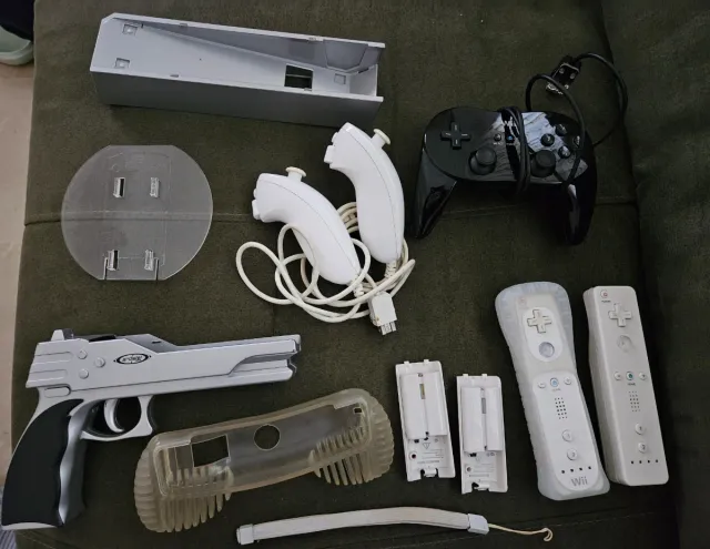 Dettagli del prodottoSet di accessori per Nintendo Wii. Si vendono insieme o separatamente. - Controller Pro nero 13€ - Pistola argentata Ardistel 12€ - 1 controller Wii originale + custodia 20€ - 1 controller Wii compatibile 10€ (Possibilità di entrambi i controller 15€) Batterie in omaggio acquistando entrambi i controller - Base per Wii 8€ - 2 Nunchaku 15€ - Custodia in silicone per il controller + Cinturino da polso 7€ La descrizione è stata tradotta automaticamente.
