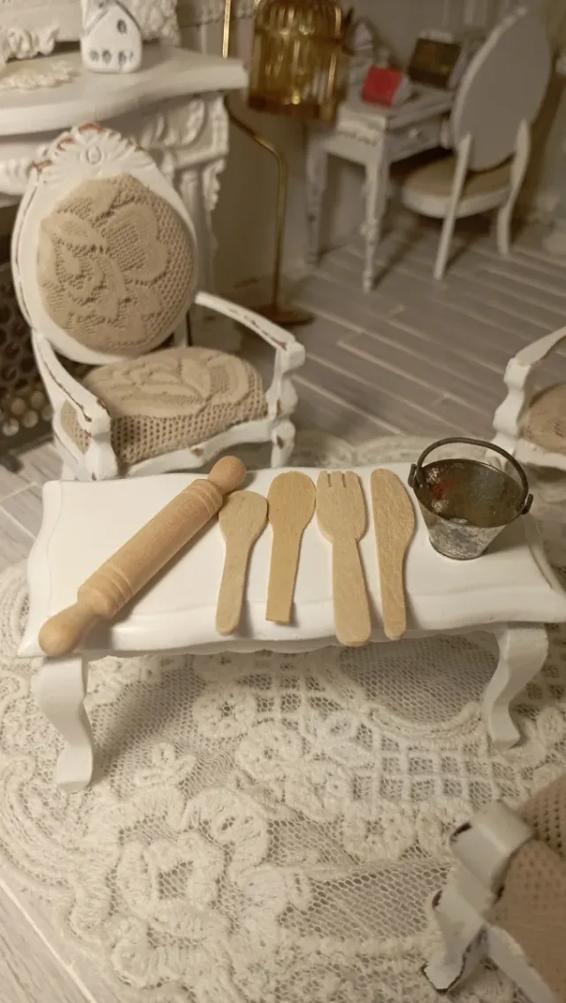 Dettagli del prodottoSet di accessori per la cucina in miniatura, scala 1:12.
