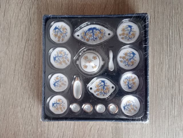 Servizio piatti da 4 portate per casa delle bambole. Nuovo nella confezione originale mai aperta.