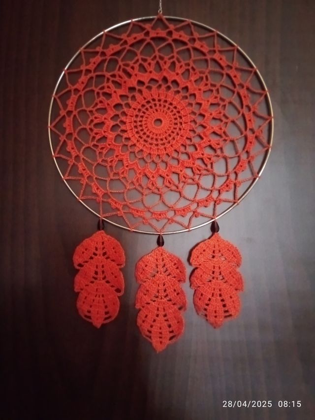 Vendo acchiappa sogni lavorato all' uncinetto con filo di cotone e cerchio in acciaio.
