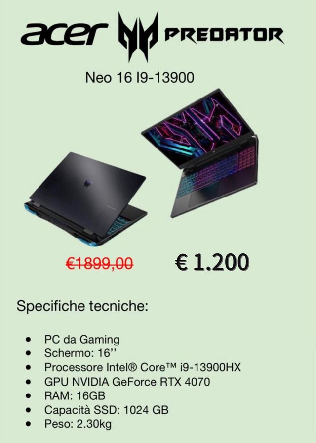 Acer Predator Neo 16 i9-13900 Nuovo