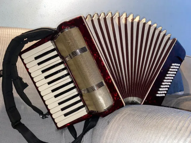 Dettagli del prodottoFisarmonica tedesca Alfa con 48 bassi. Strumento musicale con un design classico ed elegante. Per principianti o appassionati, si trova in condizioni accettabili, con cinghie imbottite molto comode. Include: Tastiera pianoforte, Bottoni bassi, Cinghia di sostegno. Spedizioni negoziabili. La descrizione è stata tradotta automaticamente.