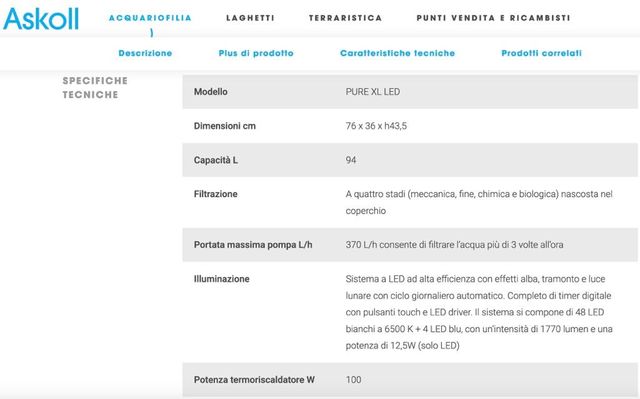 Dettagli del prodottoAcquario Askoll Pure XL, 97Lt lordi, usato ma in buone condizioni. Completo di accessori originali in dotazione all'acquisto (sistema di illuminazione led, sistema filtrante nascosto sotto il coperchio, riscaldatore). In più aggiungo accessori tra cui: Mangiatoia Askoll Robofood, arredi (piante e rocce).