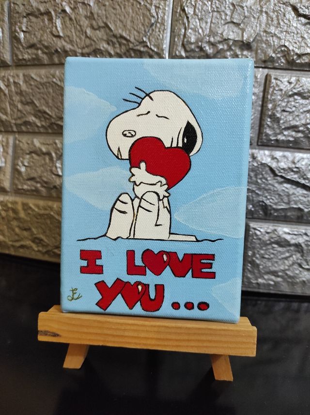 Acrilico su tela di Snoopy Incluso di cavalletto in legno da esposizione Misura cm. 18X13