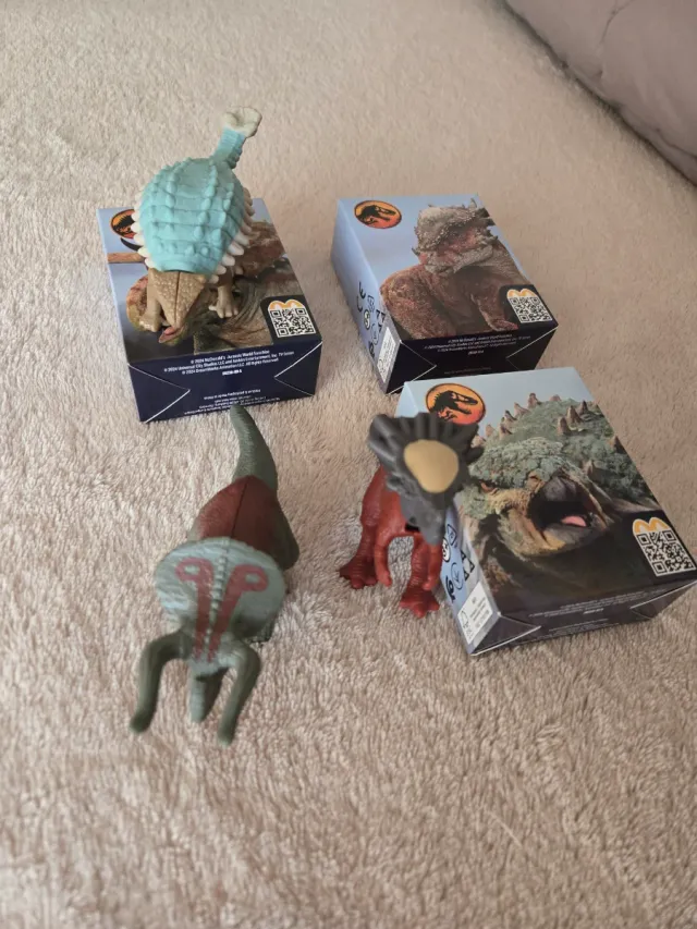 Set di action figure del Jurassic World, provenienti da Happy Meal. - Personaggi assortiti a tema dinosauri. - Scatole originali incluse.