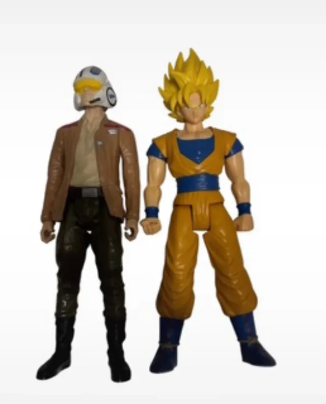- Action figure stile Dragon Ball con capelli biondi e tuta arancione.