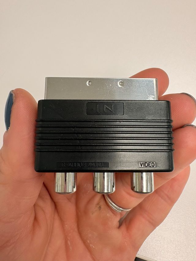 Dettagli del prodottoAdattatore da euroconnessore (SCART) a RCA. Permette di collegare dispositivi vecchi con uscite audio/video RCA (comunemente noti come connettori phono) a televisori o altri dispositivi con ingresso euroconnessore La descrizione è stata tradotta automaticamente.