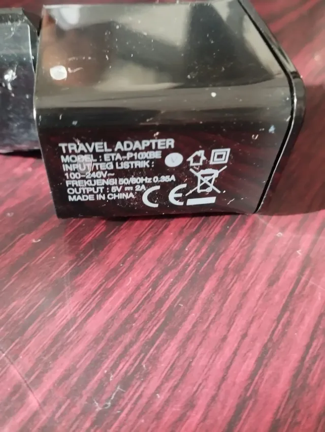 Adattatore da viaggio universale per dispositivi elettronici. - Modello: ETA-P10XBE - Input: 100-240V~ 50/60Hz 0.35A - Output: 5V 2A - Made in China