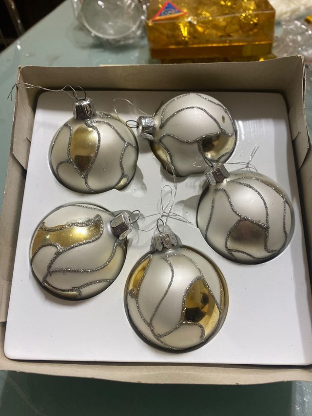 N.5 palline natalizie plastica vetrata circonferenza 20 cm glitterate