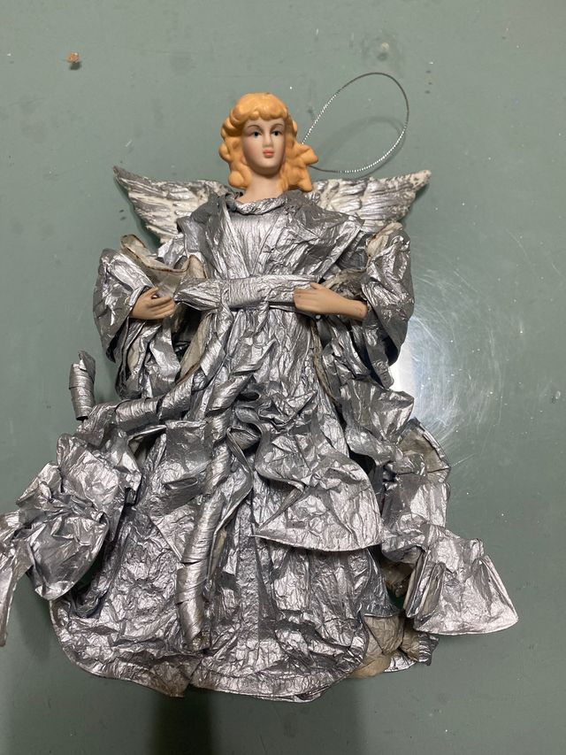 Angelo in cartapesta con viso mani e ali in plastica rigida altezza 25 cm