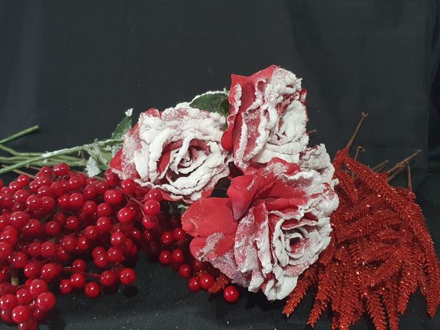 4 rose con stelo lungo 60 cm c.a. effetto neve. Sono di ottima manifattura da farle sembrare vere.