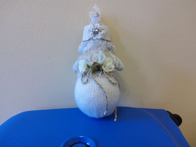 Addobbo natalizio in lana e feltro, artigianale. Altezza totale cm 28. L'alberello misura cm 16. La circonferenza della palla è cm 36