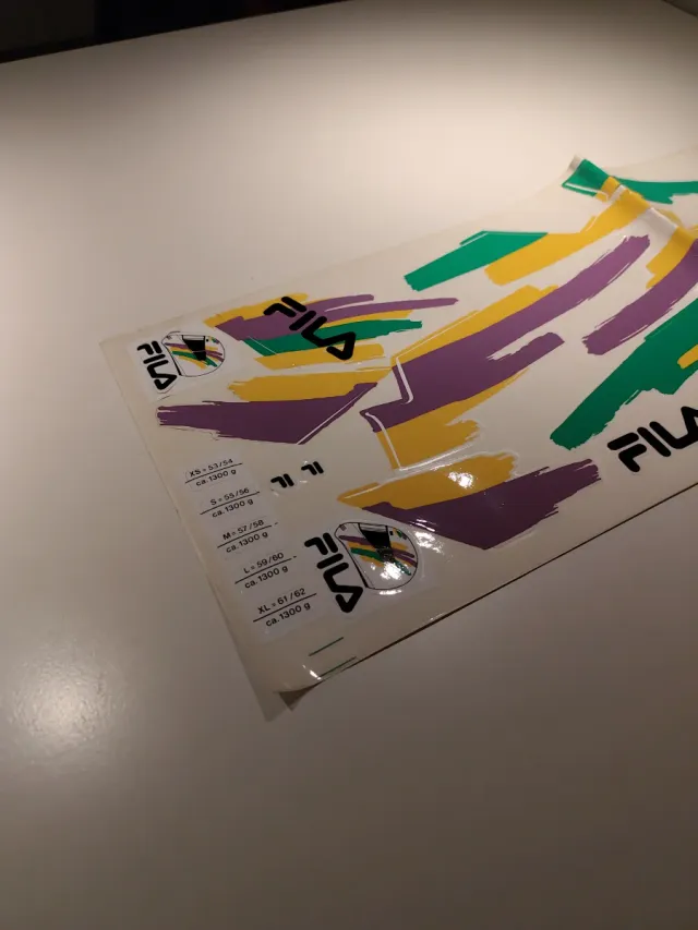 Dettagli del prodottoSet di adesivi Fila vintage con design colorato.