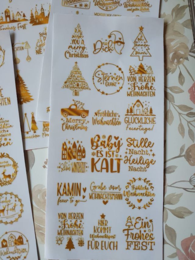 Dettagli del prodottoSet di adesivi dorati a tema natalizio, perfetti per decorare biglietti, pacchi regalo e lavoretti.