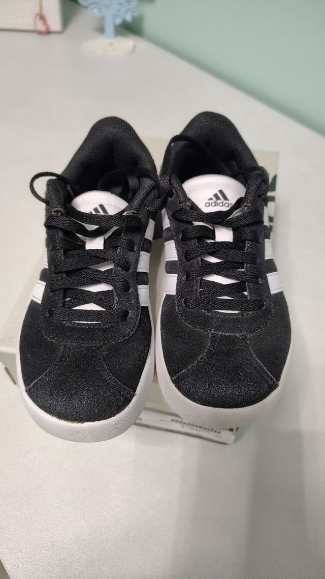 Scarpe Adidas VL Court per bambino. - Colore nero con strisce bianche. - Chiusura con lacci. - Logo Adidas sulla linguetta.