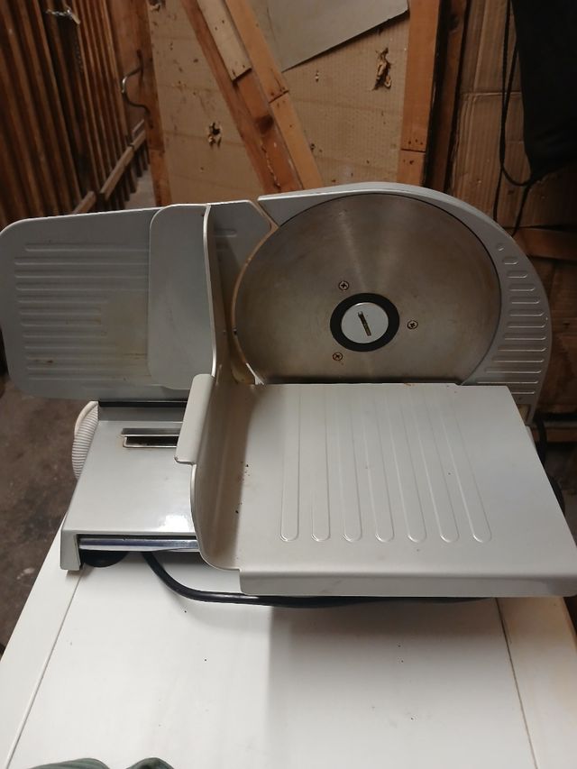 Dettagli del prodottoAffettatrice elettrica usata, in buone condizioni generali. Ideale per affettare carne, formaggi e altri alimenti.