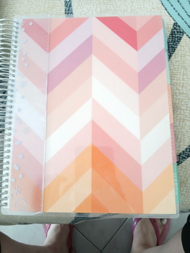 Agenda Erin Condren con diseño chevron. - Diseño chevron en tonos pastel. - Separadores mensuales. - Bolsillo organizador.