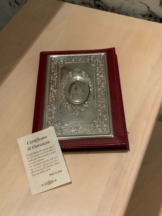 Dettagli del prodottoElegante agenda con copertina in pelle e dettagli in lamina d'argento.