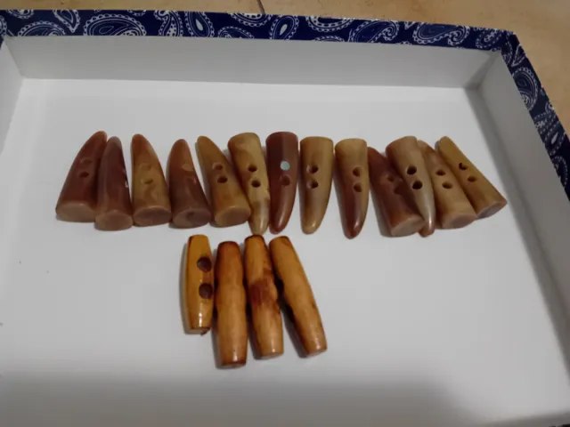 Set di alamari effetto corno e legno, perfetti per abbigliamento. - Varie forme colori e finiture.