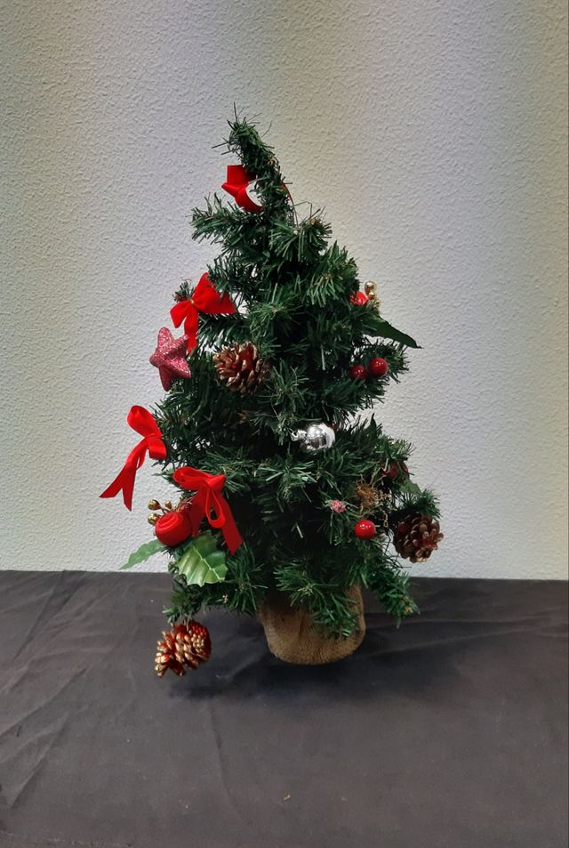 Alberello piccolo di Natale gia' adornato , puoi arricchirlo con luci e addobbi - NUOVO senza cartellino. Misura cm 45x24