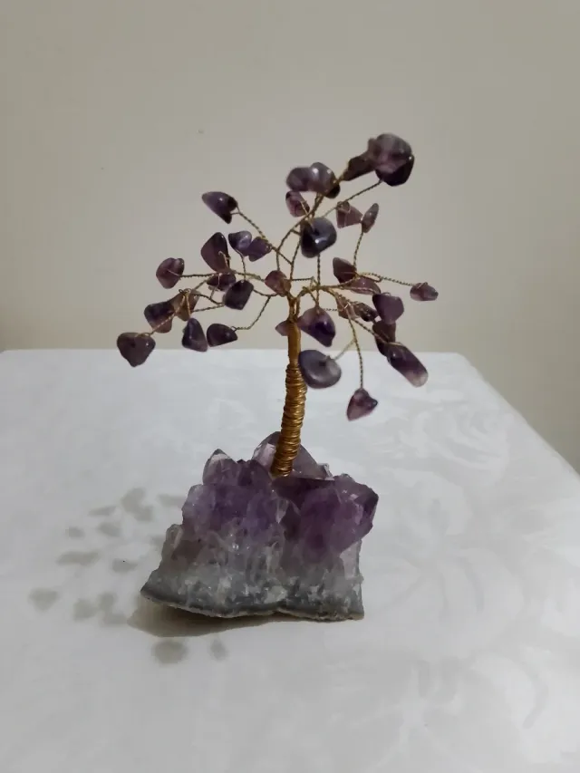 Dettagli del prodottoBellissimo albero bonsai decorativo con una base di ametista grezza.