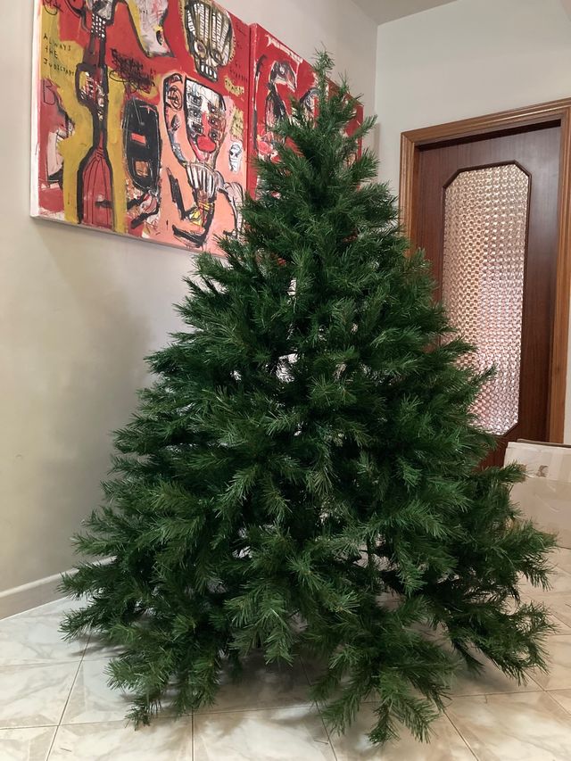 Albero di natale classico grande, alto 180cm. Base compresa, la larghezza della base è 46 cm. È stato usato pochissime volte, vendo per inutilizzo