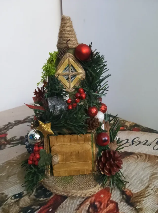 Dettagli del prodottoAlbero di natale con presepe e luci. FATTO A MANO. Altezza cm 23, diametro base cm 15,5