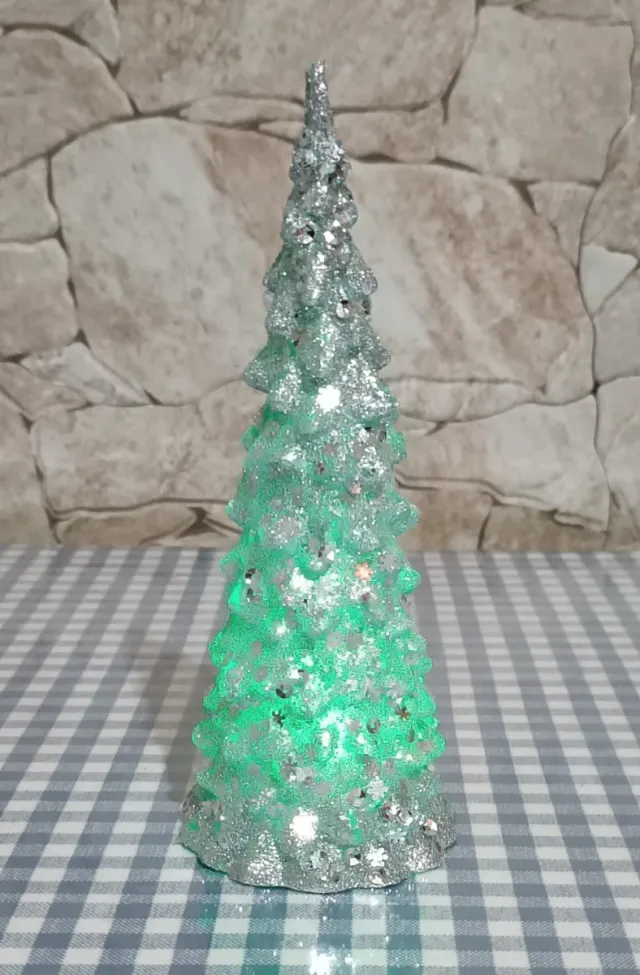 Un piccolo albero di Natale decorativo, perfetto per aggiungere un tocco festivo alla tua tavola o mensola. Le luci LED interne creano un'atmosfera magica.