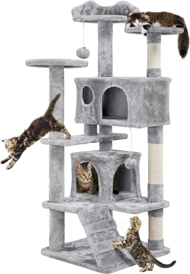 【Posatoi superiori e pali in sisal】 I tre posatoi superiori sono gli osservatori ideali per i gatti per "ispezionare la loro casa". Tre pali arrotolati in corda di sisal a diverse altezze aiutano a incoraggiare un comportamento positivo ai graffi e a tenere lontani quei piccoli artigli affilati dai tuoi mobili raffinati.