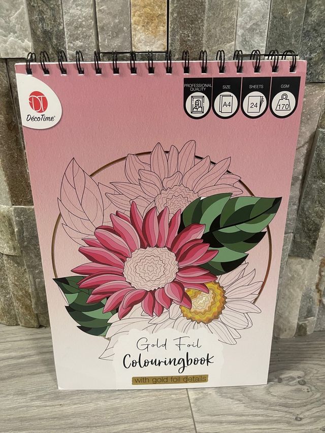 Album da colorare Déco Time con dettagli in lamina d'oro. - Qualità professionale. - Formato A4. - 24 fogli. - Grammatura 170 GSM.
