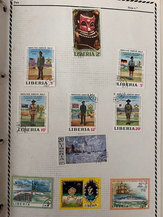 Dettagli del prodottoAlbum con vari francobolli della Liberia, alcuni commemorativi di eventi come il Jamboree e il Congresso degli Scout. Ho altri paesi e francobolli, circa 50 pagine complete di più di 30 paesi. - Francobollo della Liberia con maschera tribale. - Francobollo della Liberia 2c. - Francobollo della Liberia 3c. - Francobollo della Liberia 5c. - Francobollo della Liberia 10c. - Francobollo della Liberia 12c. - Francobollo della Liberia 20c. - Francobollo commemorativo dell'Unione Postale Universale. - Francobollo di Niccolò Copernico. La descrizione è stata tradotta automaticamente.