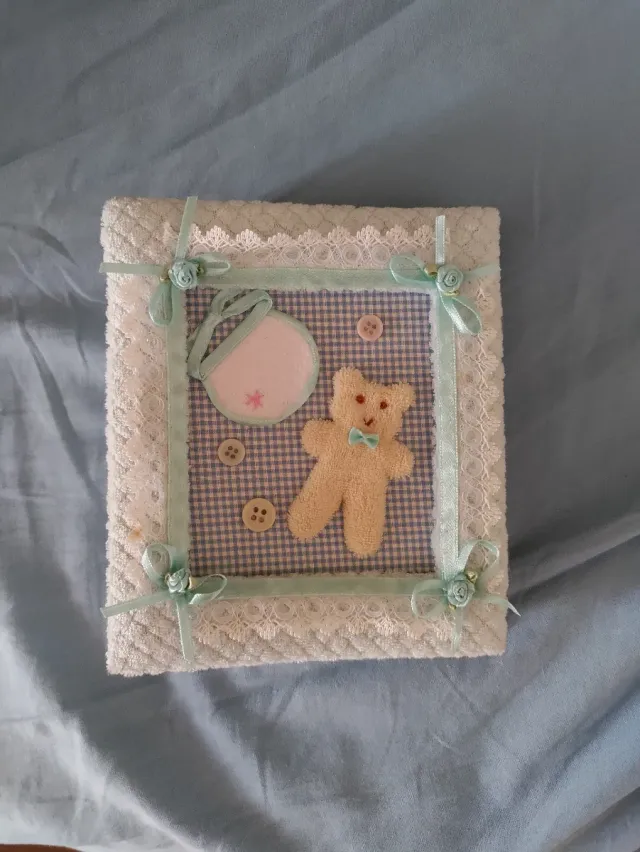 Dettagli del prodottoAlbum fotografico decorato a mano con tema bebè.