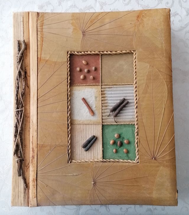 Dettagli del prodottoVendo album portafoto, realizzato in legno, foglie e altri materiali vegetali secchi. Molto carino, ma usato, ancora in ottime condizioni.