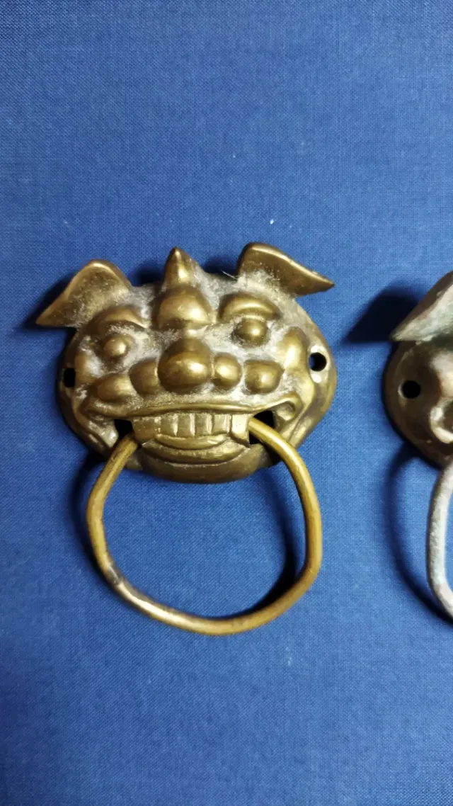 Set di antiche campanelle in ottone massiccio con design di animali orientali. Da restaurare.