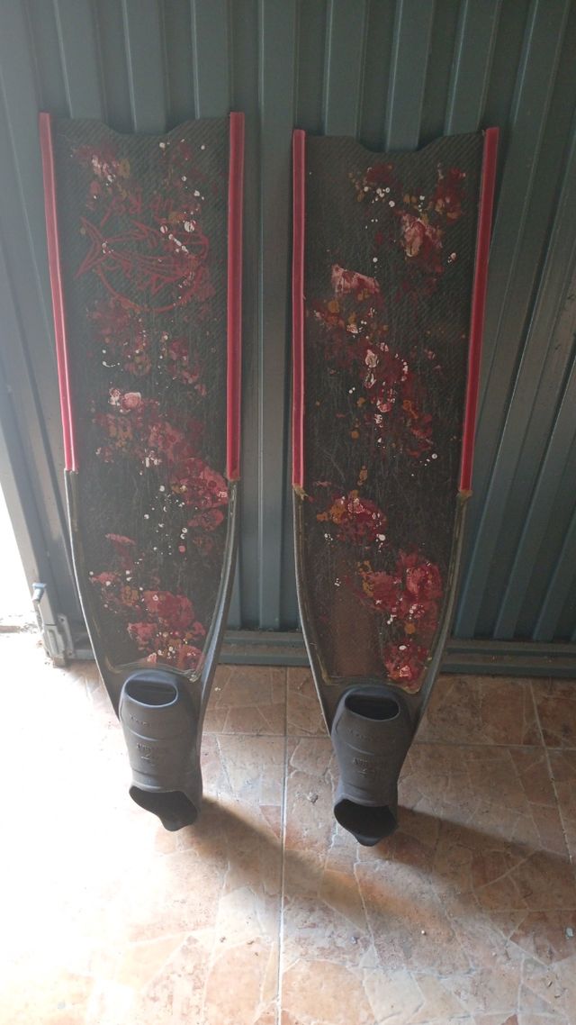 - Tipo: pinne per immersioni o pesca subacquea. La descrizione è stata tradotta automaticamente.