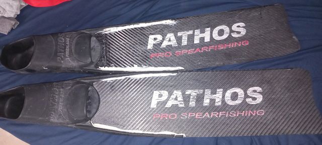-Pinne da immersione in carbonio Pathos., hanno una piccola crepa nella scarpa per incollare da lì il prezzo.