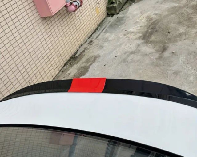 Alettone per auto di colore nero con una striscia decorativa rossa. - Materiale: Plastica - Colore: Nero e Rosso