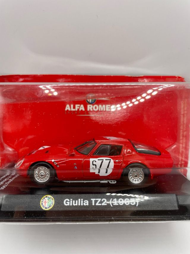 Modellino Alfa Romeo Giulia TZ2 del 1965, con livrea Nurburgring. - Scala 1:43 - Colore rosso - Base espositiva inclusa Scatolone