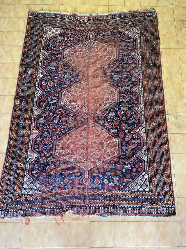 Antico tappeto caucasico kazak del XIX secolo tessuto a mano