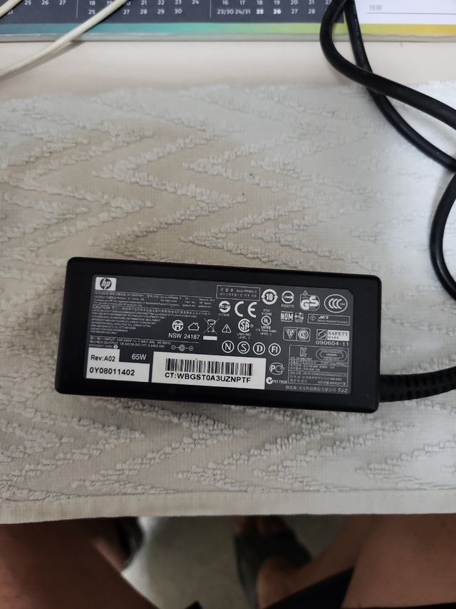 Vendo alimentatore per computer portatile HP. È in buone condizioni. - Modello: HP 65W - Codice prodotto: 0Y08011402 - Numero di serie: CT:WBGSTOA3UZNPTF