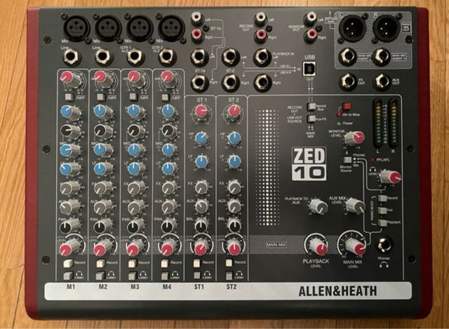 Mixer Allen & Heath ZED-10 in condizioni eccellenti. È uscito dalla scatola 3 volte. 10 canali. Questi canali sono suddivisi in 4 canali mono (con ingressi XLR e jack) e 2 canali stereo. Inoltre, dispone di 2 ingressi stereo aggiuntivi.