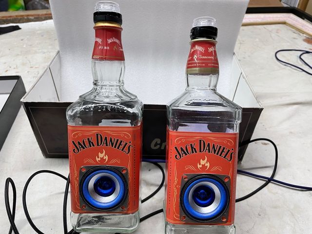 Dettagli del prodottoCoppia di altoparlanti realizzati con bottiglie di Jack Daniel's. Fatto a mano... per te, secondo i tuoi gusti... con i tuoi colori.