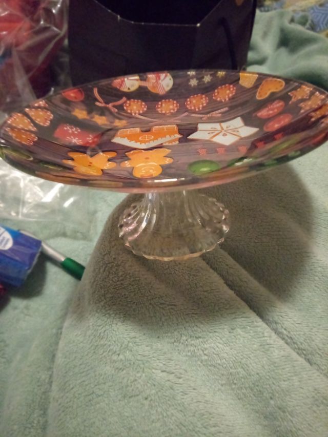 alzatina in vetro con decori natalizi di diametro 20cm e alta 9 cm