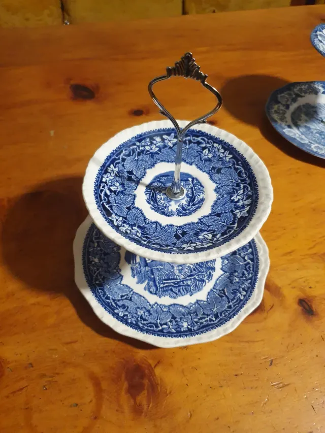 Dettagli del prodottoElegante alzatina a due piani in stile inglese, con il classico decoro blu e bianco di Mason's.