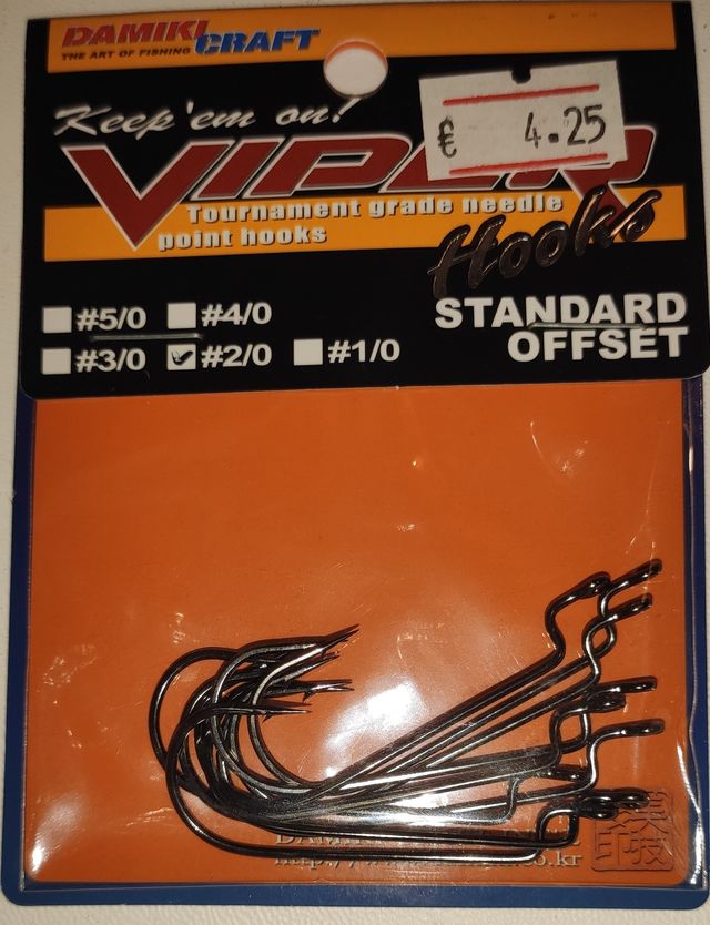 Ami da pesca Damiki Viper modello Standard Offset misura n° 2/0. - Tournament grade needle point hooks. Pacchetti disponibili: 9